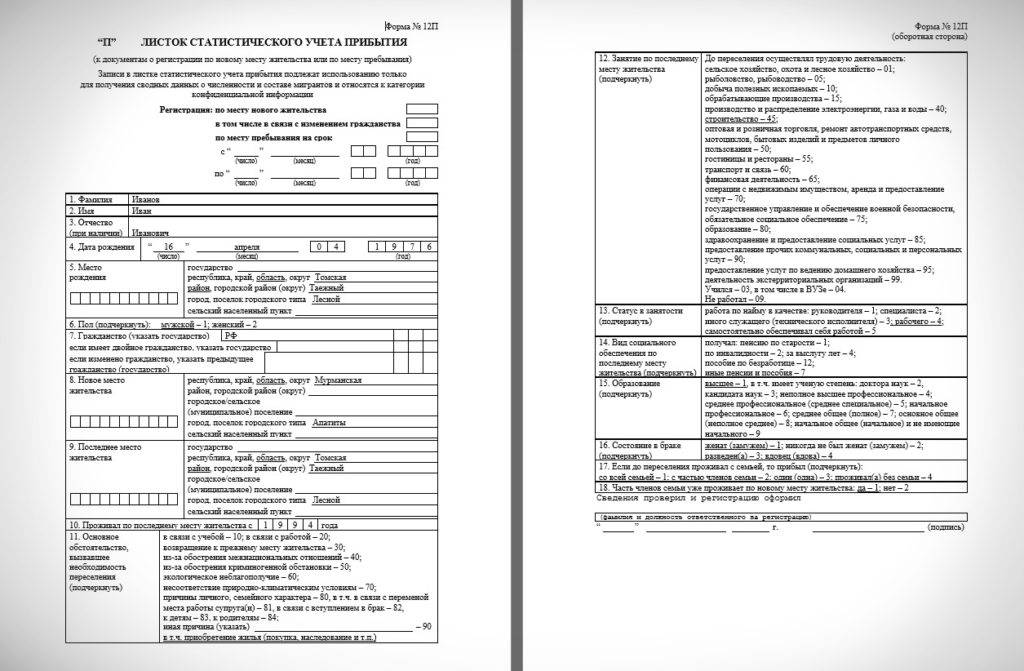 - Статистический листок по форме №12-П (при регистрации на срок от 9 месяцев). Заполняется в 1 экземпляре.