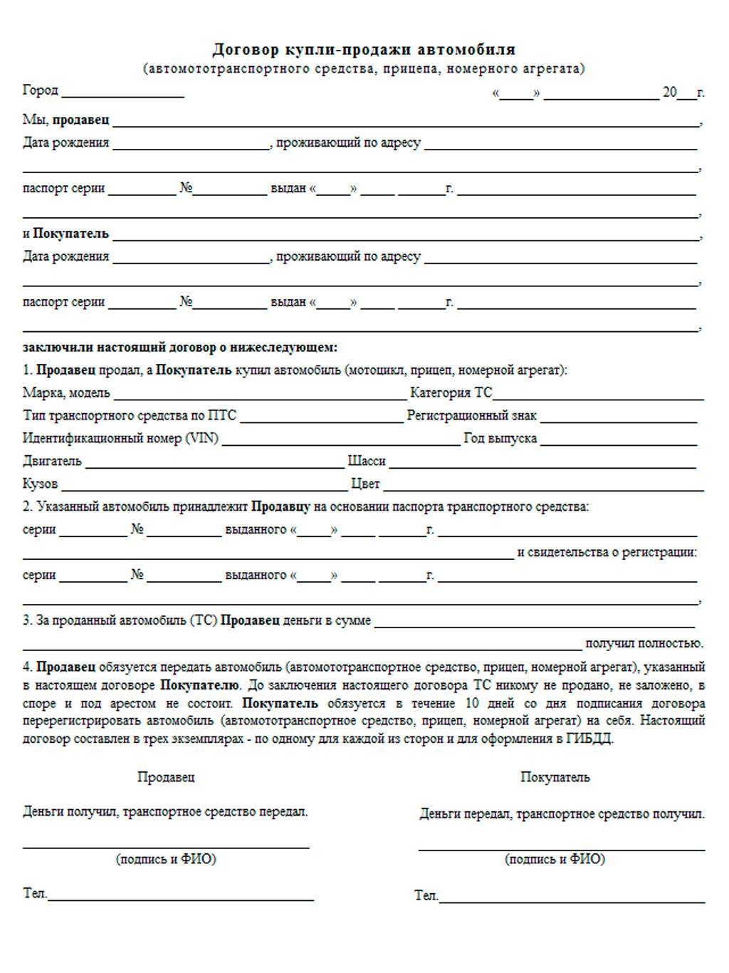 - Распечатывать бланк ДКП автомашины в трёх экземплярах (для нового хозяина, продавца, а также предоставления в ГИБДД).