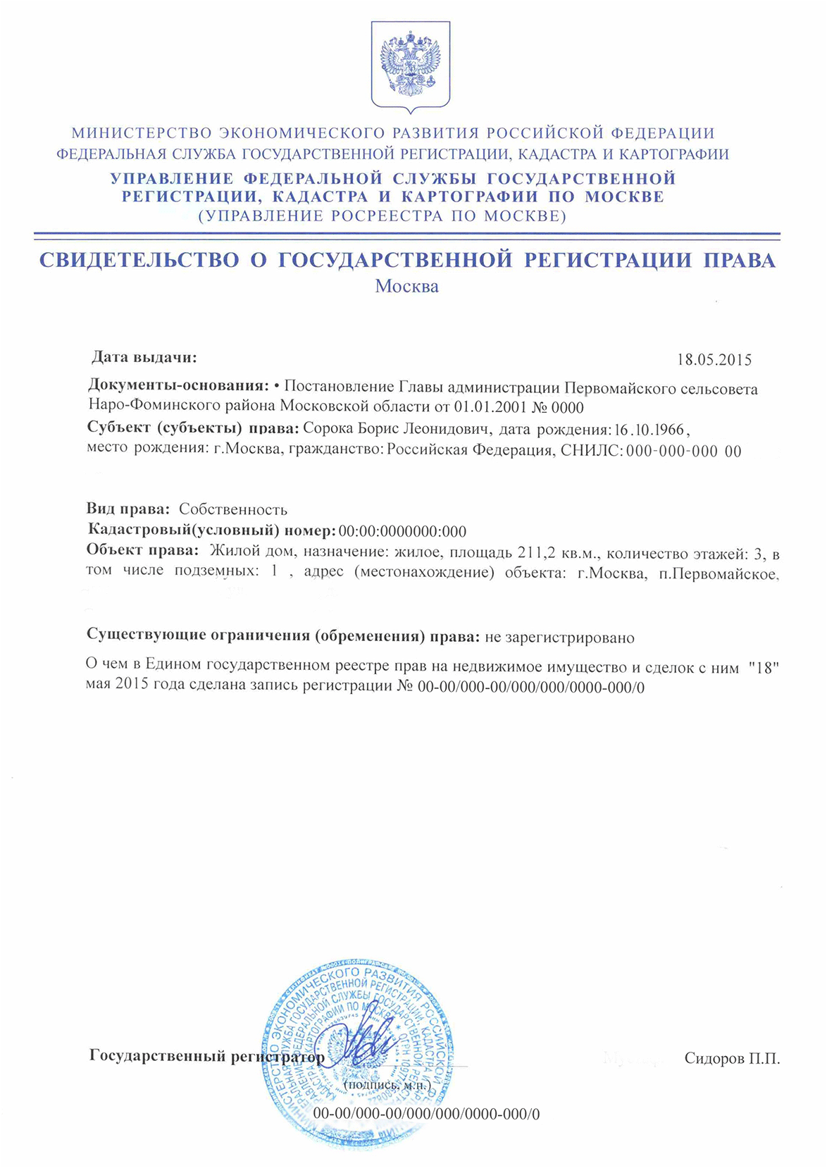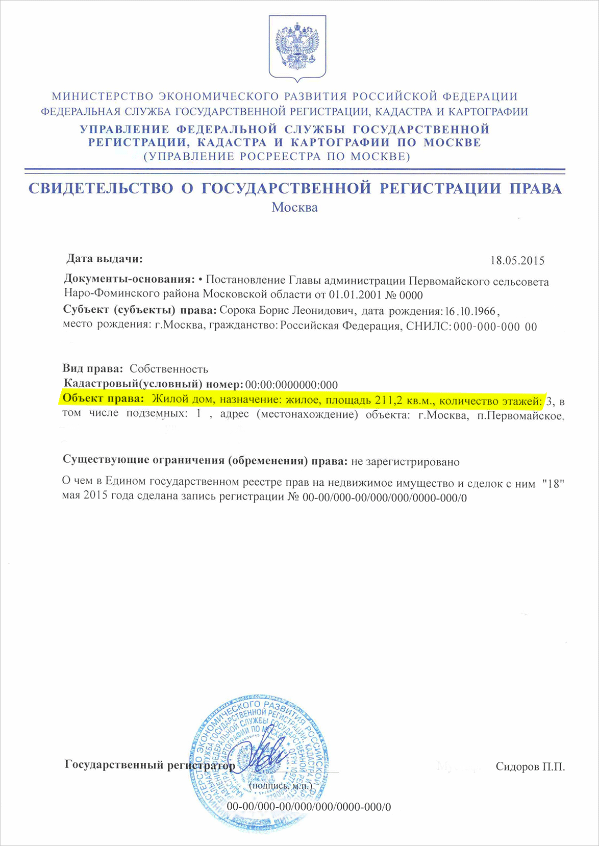 Прописан:___________________________