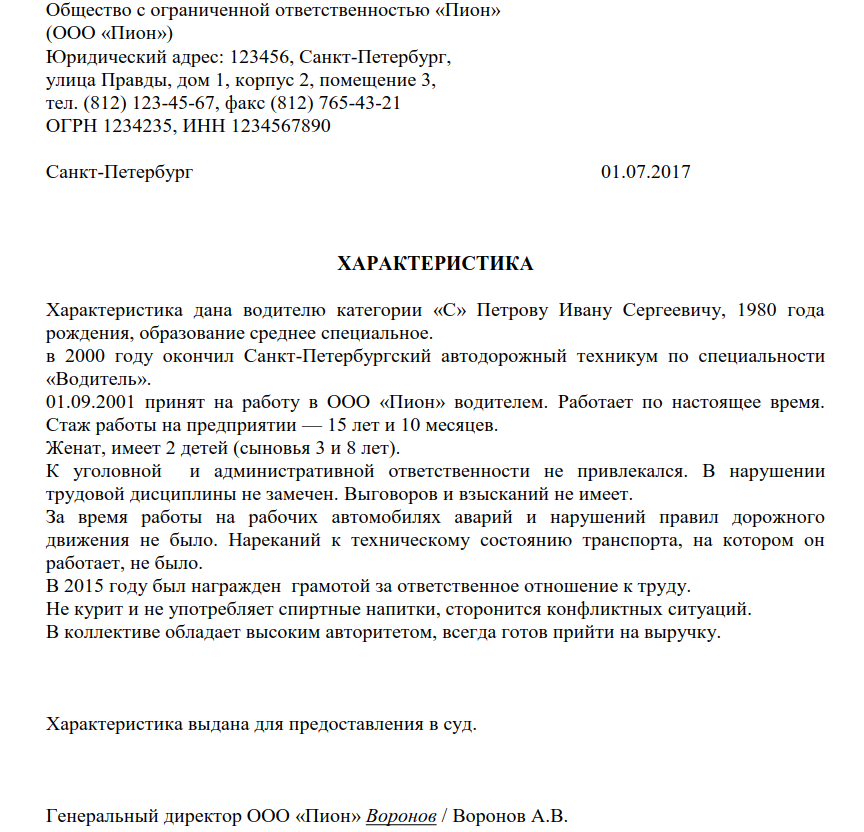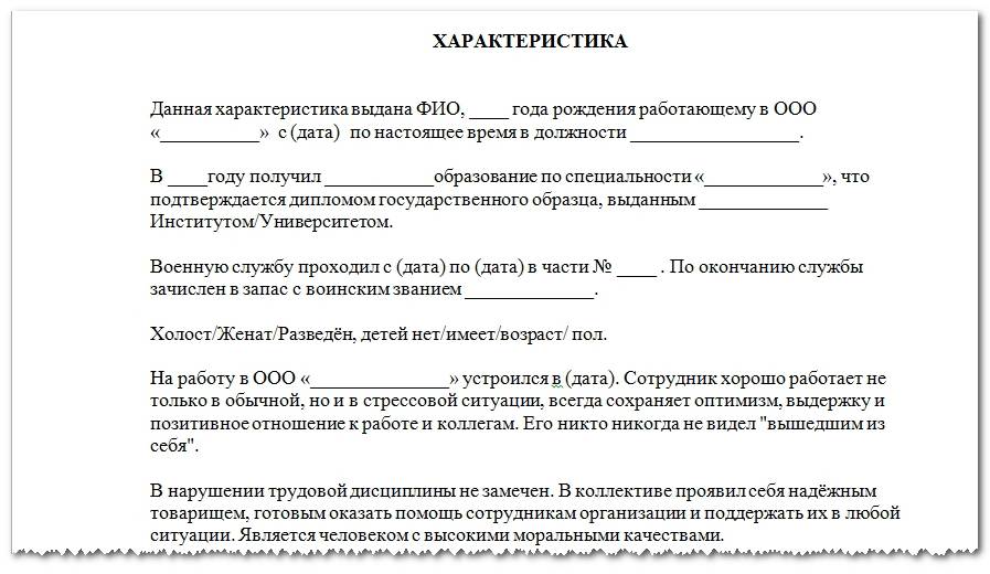 Образец характеристики для суда