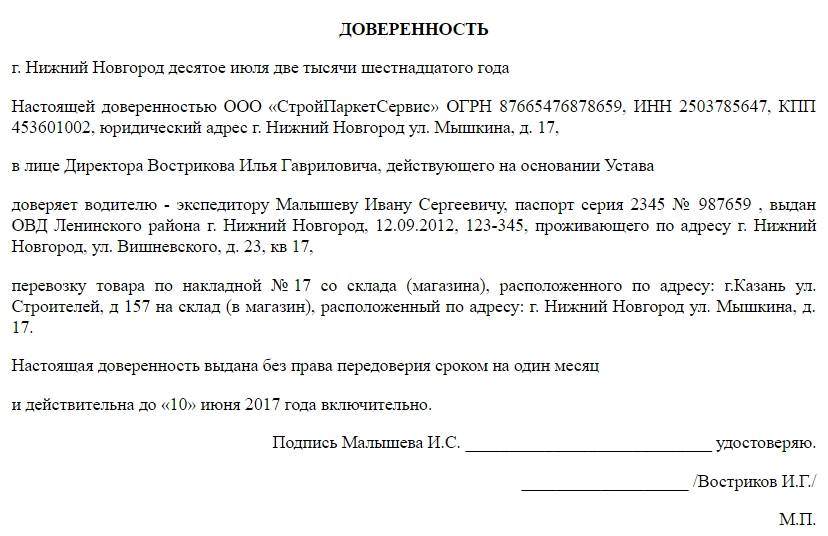 Оформление доверенности на перевозку груза вполне стандартно с точки зрения правил и норм делопроизводства.