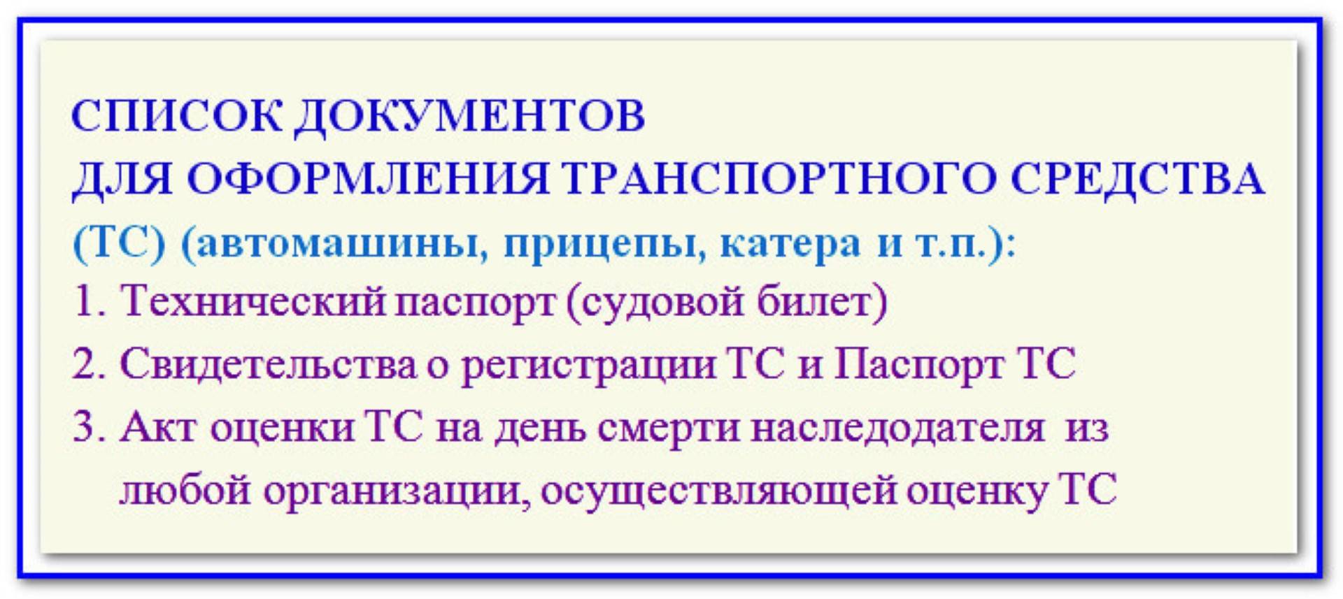 - предоставление документации (подаваемое заявление, паспорт, правоустанавливающие документы на авто, завещание, подтверждение родства);