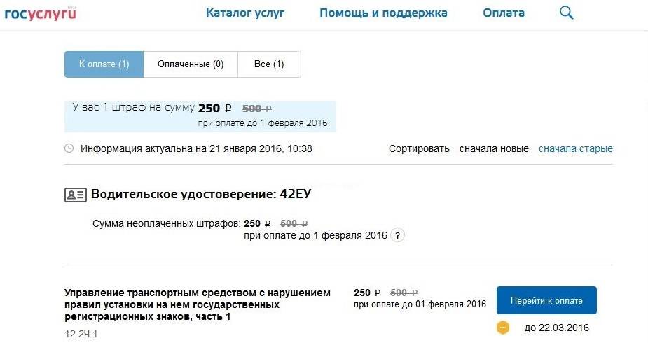 Единый портал также предоставляет возможность оплаты штрафа со скидкой 50%. Для того, чтобы осуществить оплату, следует: