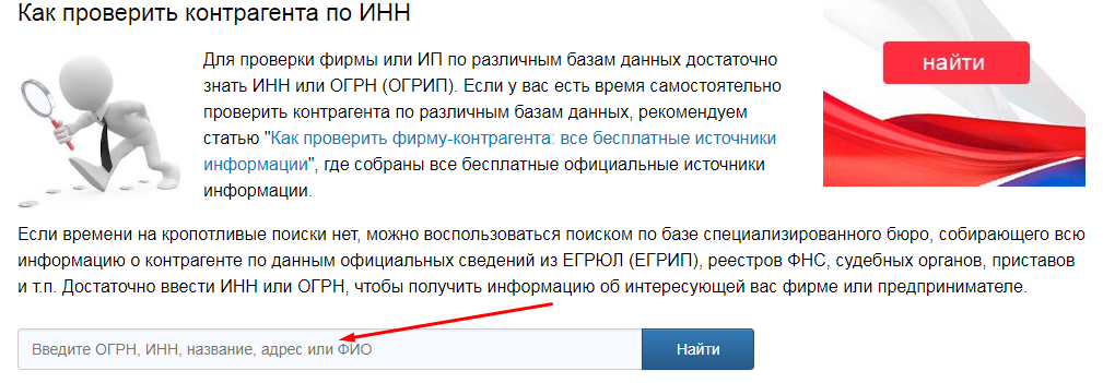 Если, например, следует узнать ИНН юридического лица, необходимо навести курсор на соответствующее окно и кликнуть на надпись «проверить себя и контрагента».