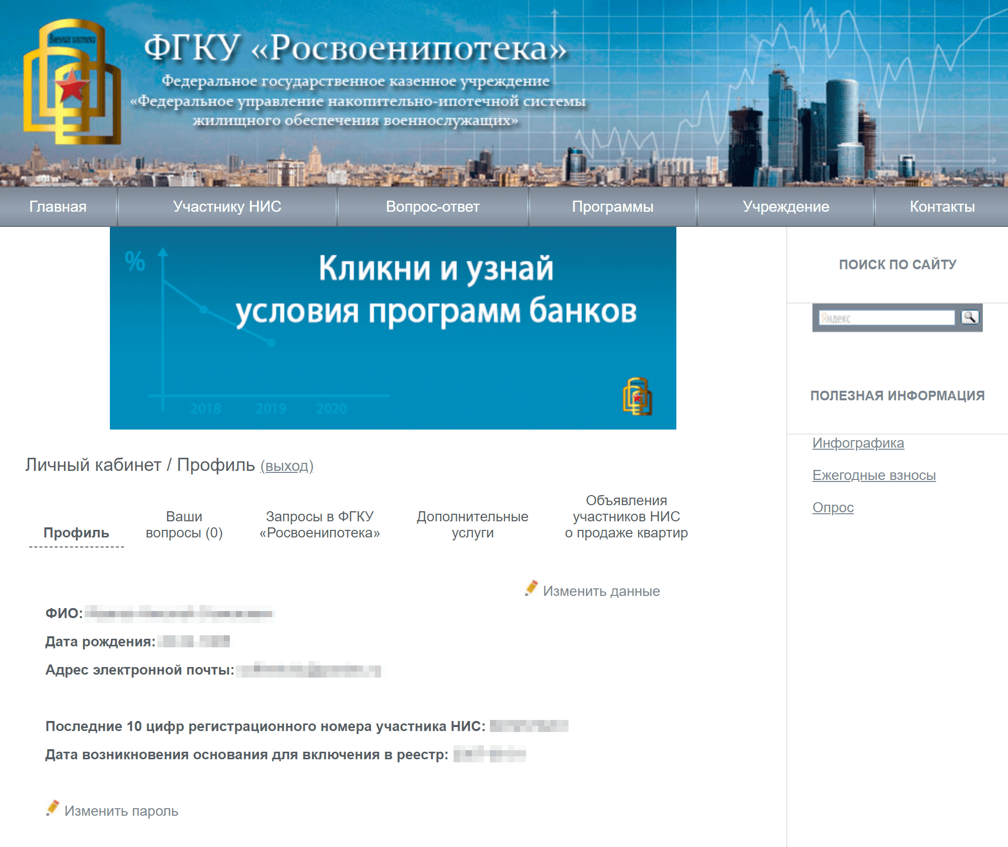 У Росвоенипотеки есть свой сайт с личным кабинетом участника накопительно-ипотечной системы. Через него проверяют состояние накопительного счета, наличие обременений или график погашения задолженности