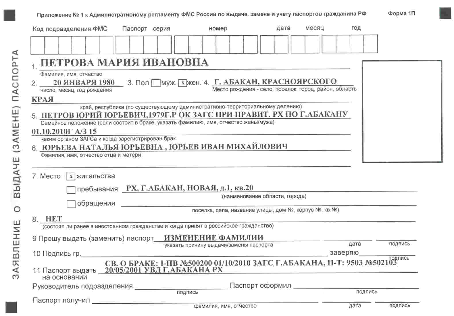Заявление на смену паспорта.